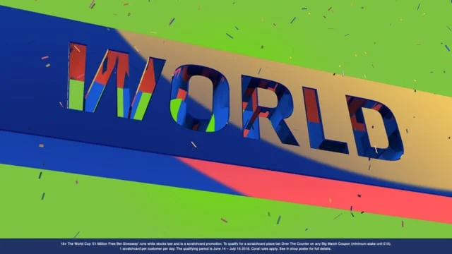 I created this animation for Coral Racing to promote their £1 Million Free Bet Giveaway promotion during the Football World Cup 2018.